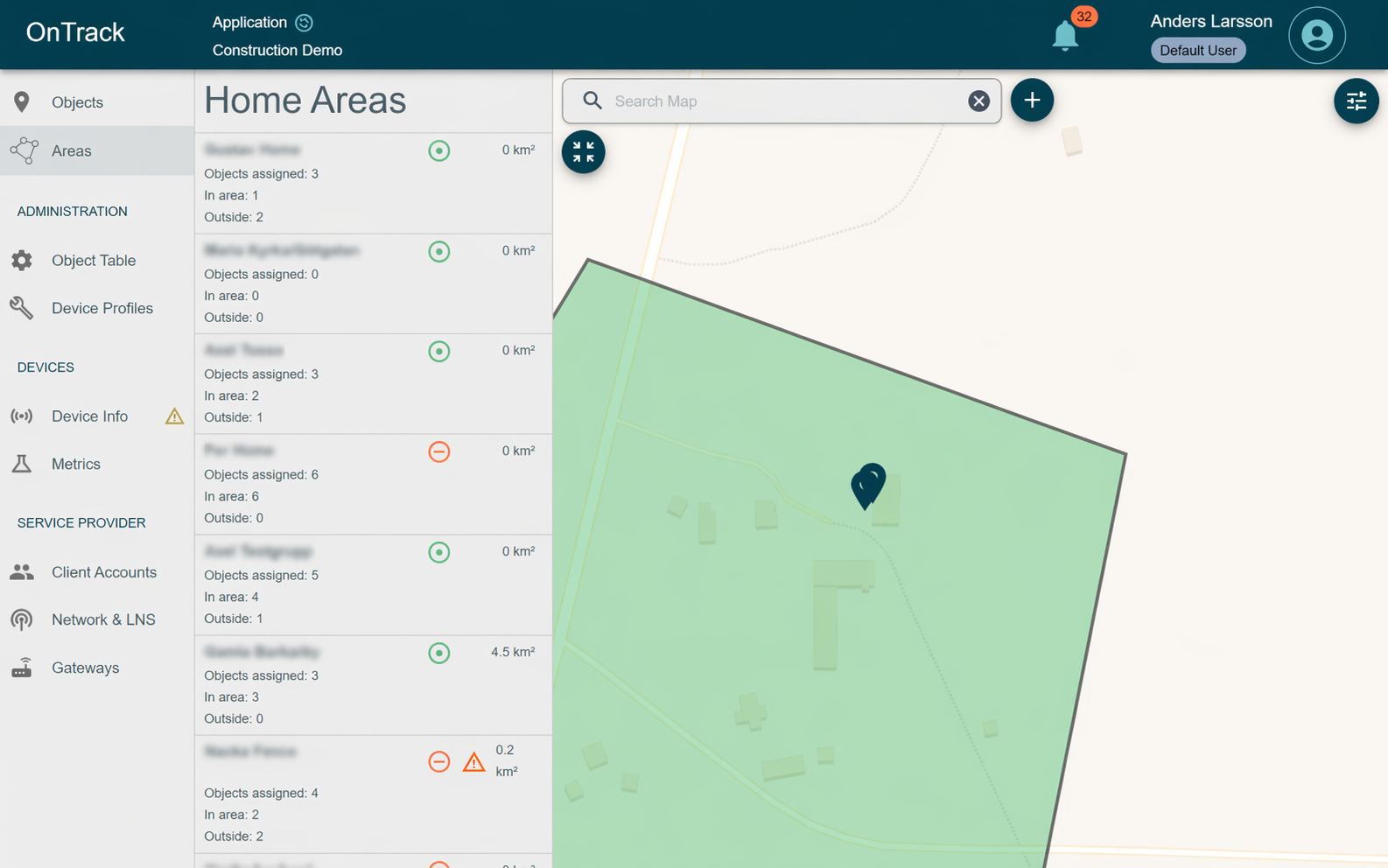 OnTrack provides a shared operational view of tracked objects, connected devices, and configured areas. It is designed to support both day-to-day tracking and device administration, whether you manage a small fleet or a larger deployment.
